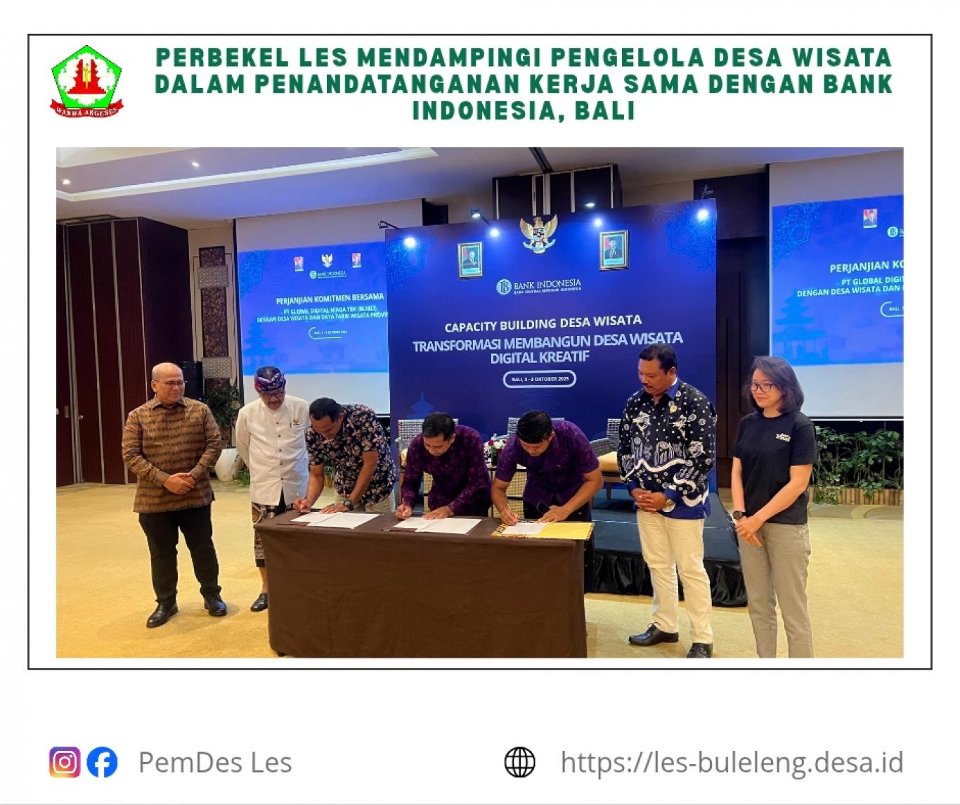 - Perbekel Les Medampingi Pengelola Desa Wisata dalam Penandatanganan Kerja Sama dengan BI, Bali